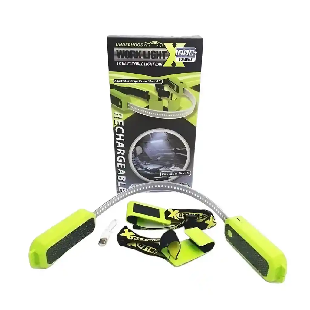 Ilumina tu motor con una claridad profesional gracias a la Underhood Work Light X, una barra de luz flexible de 15 pulgadas diseñada para ofrecer una visibilidad superior en cualquier tarea mecánica. Con más de 1000 lúmenes de potencia y 60 LEDs de ángulo amplio, esta lámpara elimina las sombras y proporciona una cobertura total del compartimento del motor, permitiéndote trabajar con manos libres gracias a sus correas ajustables que se extienden más de 6 pies. Su batería recargable de Li-ion garantiza hasta 2.5 horas de autonomía continua, mientras que sus ganchos acolchados de goma protegen la pintura de tu vehículo, convirtiéndola en la herramienta indispensable para cualquier taller o garaje doméstico. FICHA TÉCNICA Producto: Lámpara de trabajo flexible para capó Modelo: Underhood Work Light X 1000+ Potencia lumínica: 1000+ Lúmenes Cantidad de LEDs: 60 LEDs de ángulo amplio Longitud de la barra: 15 pulgadas (barra flexible) Batería: Recargable de Ion de Litio (Li-ion) integrada Autonomía: Hasta 2.5 horas de uso continuo Carga: Puerto Micro USB (incluye cable de carga USB) Sistema de fijación: Correas elásticas ajustables (extensibles a más de 6 pies) Ganchos: Acolchados con goma para evitar rayones en el capó Modos de luz: Configuración de haz Alto, Medio y Bajo Voltaje de carga: 5V DC (vía USB) POLÍTICAS DE GARANTÍA Garantía de 30 días calendario por defectos de fábrica a partir de la recepción del producto. No se cubren daños derivados de caídas, exposición a líquidos corrosivos de motor, sobrecargas eléctricas por uso de adaptadores no estándar o manipulación interna del circuito. Para que la garantía sea válida, el producto debe ser devuelto con su empaque original, cable USB y todos los accesorios de sujeción. El desgaste natural de la batería por ciclos de carga no está incluido en la garantía.