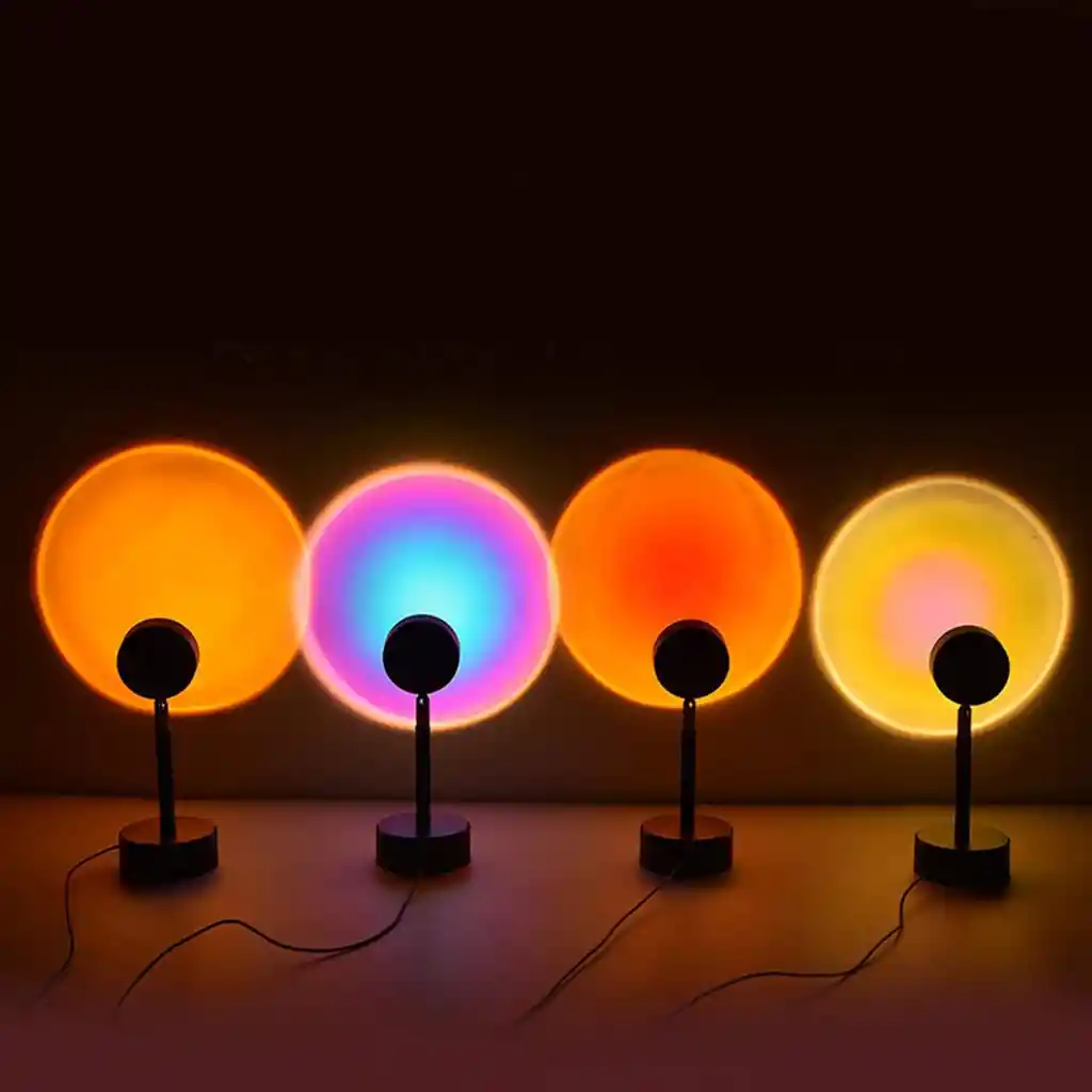 El diseño dinámico da una sensación fantástica donde quiera que lo pongas en el dormitorio, sala de estar o una celebración. Estable y duradera, hecho de materiales de alta calidad. El cabezal de la lámpara se puede girar 180º y 360º. - Lampara proyector atardecer. - Solo alumbra en forma de "Atardecer rojizo". - Lente de vidrio. - Cuerpo de ABS. - Soporte extensible. - Botón ON/OFF. - 5 W de potencia. - Conexión cable USB (95 metros). - Base reforzada garantizan que la lámpara siempre esté estable.