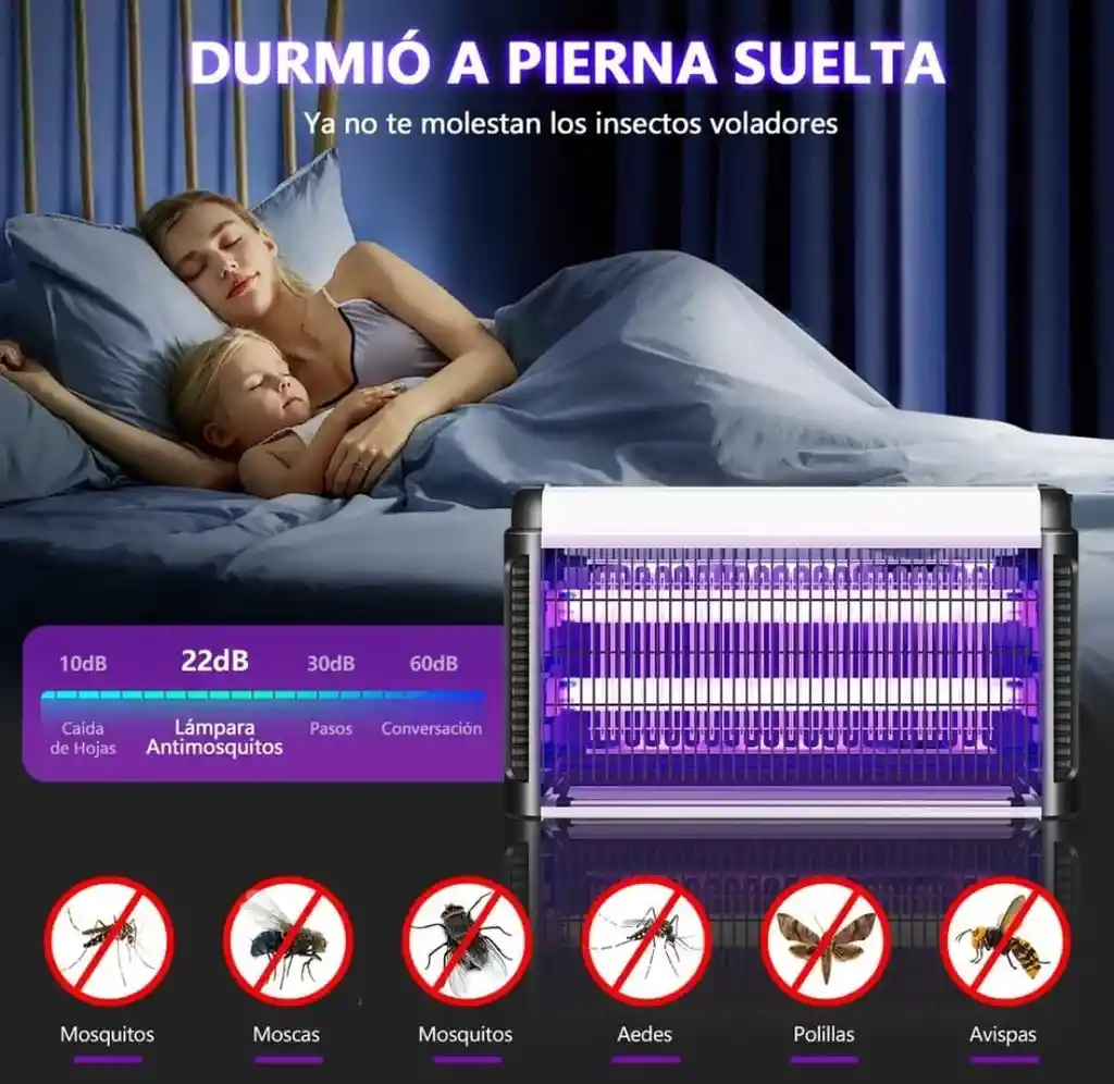 Elimina mosquitos, zancudos y otros insectos voladores de forma rápida, silenciosa y sin químicos con esta potente lámpara mata mosquitos eléctrica de luz ultravioleta (UV) de 20W. Su tecnología atrae a los insectos mediante luz UV y los elimina al contacto, siendo segura para personas y mascotas. Diseñada para uso en interiores, es ideal para hogares, habitaciones, cocinas, locales comerciales, oficinas o bodegas. Su diseño alargado permite una mayor cobertura y eficiencia. Características destacadas: Tecnología UV que atrae y elimina insectos voladores Potencia: 20W Funcionamiento silencioso y sin olores No usa químicos ni pesticidas Bajo consumo de energía Fácil de instalar y limpiar Uso recomendado en interiores Medidas: Largo: 50 cm Alto: 20 cm Ancho: 6 cm