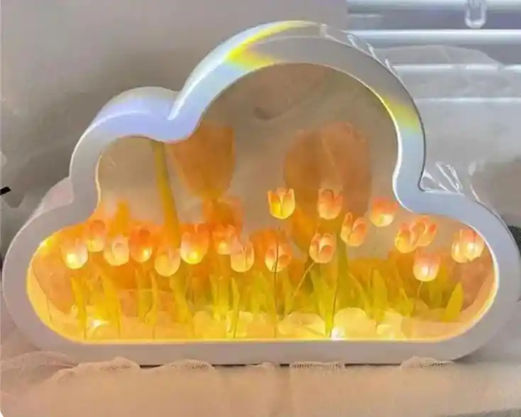 Luz Nocturna de Espejo 2 en 1: Cuando enciendes la luz de noche de tulipán, es una es un romántico mar de tulipanes luz nocturna que añade un toque de romanticismo y ambiente a tu noche. Cuando apagas la luz de noche de tulipán durante puede ser un espejo en el tocador. Luz de noche de lampara de tulipanes de bricolaje. Se trata de una luz nocturna de bricolaje, que le permite a usted y a sus amigos experimentar plenamente la diversión de la artesanía. Cada flor se puede ajustar a la posición deseada. (El producto necesita despegar la película protectora para el montaje.) Decoración Romántica: Esta luz de nube se puede usar como luz nocturna, luz de humor o como una decoración única romántica para cualquier habitación de su hogar. La luz nocturna de tulipán en la nube es suave y cálida, suave y no deslumbrante, protege todas las noches y crea un ambiente romántico y suave. Esta luz de noche de tulipán para cualquier habitación y fiesta. Material Alta Calidad: Nuestra 2 En 1 lámpara tulipán con espejo con calidad de espejo superior. La lámpara LED de flor de tulipán proporciona una luz más delicada, uniforme, y sin deslumbramientos que protege sus ojos. La pantalla en forma de tulipán está hecha de material ligero de alta calidad, y utilizamos material de piedra de cristal de primera calidad para crear el diseño de tulipán de simulación.