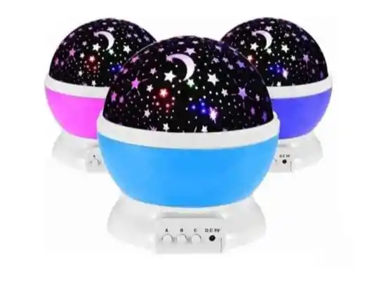 Lampara Y Proyector Giratorio De Luna Y Estrellas Cuando llega la hora de dormir y se debe apagar la luz, nuestros pequeñitos pueden tener temores, su imaginación responde a lo desconocido, un ruido, las sombras o un cambio en la misma habitación puede activar sus miedos a la oscuridad. Es por eso, que esta hermosa lampara es una idea superchevere para esas noches en que les cuesta conciliar el sueño o simplemente para decorar de forma divertida su cuarto. No te quedes sin la tuya, Características: Colores Disponibles: Azul, Rosado y Morado. Luz de decoración para el hogar, dormitorio, habitaciones infantiles. Alimentación: 3 x pilas AA (No Incluidas) o cable USB. Tamaño del producto: 14 cm x 12.7 cm x 11.4 cm.