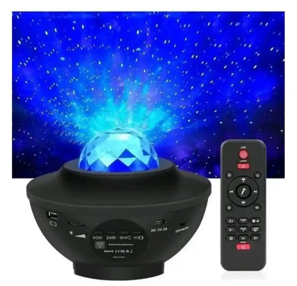 Proyector Parlante LED Estrellas y Universo para: acompañar tus noches, habitaciones, previas y fiestas con el mejor cielo! El proyector de luz de estrellas y laser cuenta con proyecciones dinámicas de 360! Altavoz de música integrado + sonido activado: proyector de luz nocturna con altavoz de música integrado BT 4.2. permite conectar tu teléfono a través de Bluetooth a este proyector de luz de estrella o conecta el puerto USB para reproducir tu música favorita. Control remoto: Controla remotamente las luces de estrellas, ajustar la luz, cambiar el modo de iluminación, modo de música, volumen. Fácil acceso a estos ajustes sin levantarse de la cama. Características principales: - Luz Nebulosa con velocidad regulable (1 estatico + 3 velocidades) - Luz Laser tipo estrellas con función estatica o fade (se dimerizan suavemente).