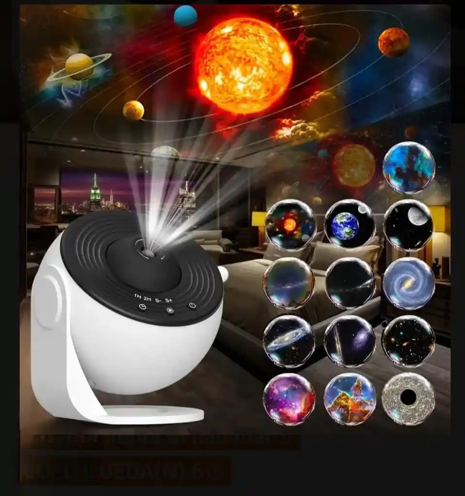 ✨️Lámpara proyector galáctico 360° con proyección realista.✨️ Transforma tu habitación en un universo lleno de estrellas con este increíble Galaxy proyector. Su diseño moderno y compacto proyecta imágenes realistas del espacio, planetas y galaxias, creando un ambiente mágico y relajante. 💎Características: 🎇Proyección de alta definición con efecto realista. 💿Incluye 12 Discos intercambiables con distintas escenas galácticas. 🔋Alimentación mediante cable USB tipo C ( incluido). ⏰️Función de temporizador de 1H y 2H para apagafo automático. 🔄Ángulo ajustable para proyectar en techo o paredes. 📘Manual de usuario, fácil de usar. Ideal para dormitorios, salas, fiestas o como luz nocturna relajante. Crea tu propio espectáculo estelar desde casa y disfruta de una experiencia visual única.