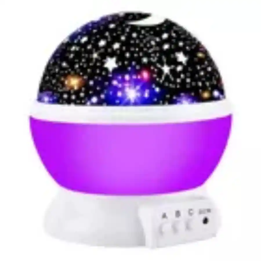 Somos ARRA IMP. Lampara Proyector Rotatoria Cielo Estrellas Noche Alumbra Color De La Estructura Morada Esta hermosa lampara es ideal para decoración y proporcionar un ambiente relajante durante las noches. Características: - Luz de decoración para el hogar, dormitorio, habitaciones infantiles. - Alimentación: 3 x pilas AA (No Incluidas) o cable USB. - Tamaño del producto: 14 cm x 12.7 cm x 11.4 cm. - Modos: Rotación/atenuación/luz nocturna - No incluye música Contenido del paquete: - 1 x Lampara - Proyector de Estrellas - 1 x Cable USB - Funcionamiento con batería o conexión eléctrica.