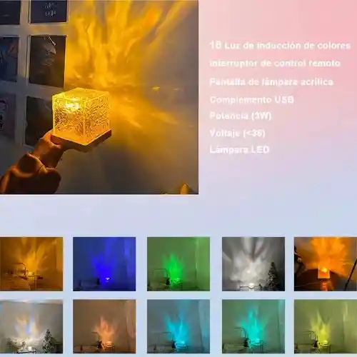 Proyector lampara con ondas oceánicas, Lampara cubo calm, noche lampara efecto agua,16 colores de efectos de luz LED RGB Con control remoto, luz de noche para habitación para parejas, amigos, familia.