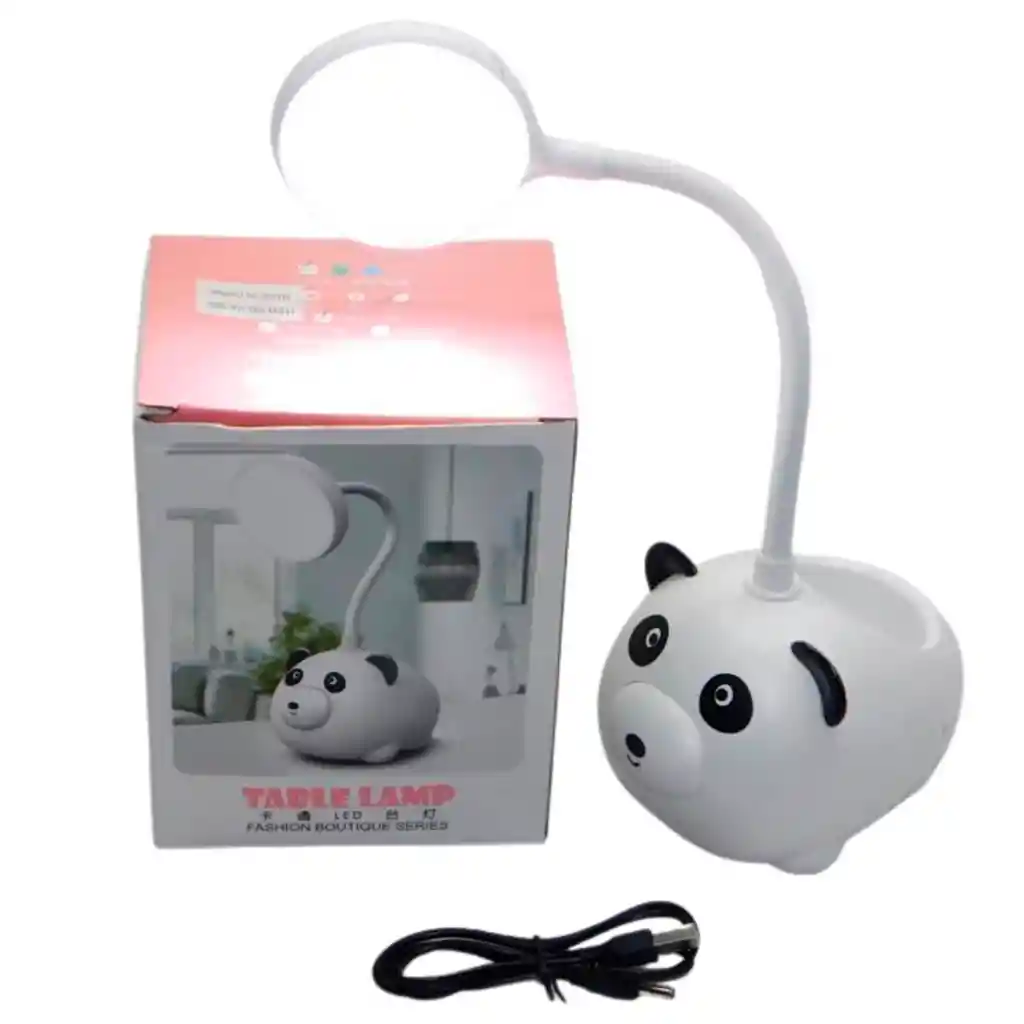 LAMPARA RECARGABLE USB MODELO oso panda luz led con porta esferos color blanco se despacha el mismo día de la compra presentación en caja