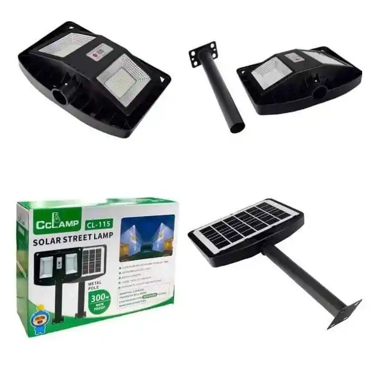 Reflector lampara panel solar exterior iluminación luz led 300w cl790s ¡ideal para jardines, patios, caminos, zonas sin energía eléctrica, camping, entre otros! lámpara solar led para exterior, carga durante el día e ilumina toda una noche, resistente al agua y todo clima. CARACTERISTICA Potencia: 300w panel: 8w tiempo de trabajo: 50 horas ip65 material plástico incluye soporte y tornillos sensor de movimiento sensor de oscuridad botón on/off