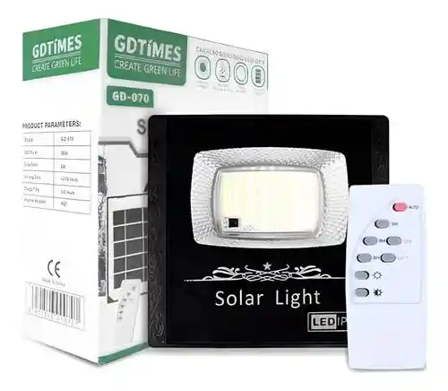 Ilumina tus espacios exteriores con el Reflector Solar GDTimes GD070 y disfruta de una iluminación potente, sostenible y versátil. Control de luz inteligente: Toma el control de la iluminación exterior desde la comodidad de tu hogar gracias a su función de control remoto. Enciende, apaga y ajusta la intensidad de la luz a tu gusto con solo presionar un botón. Panel solar recargable: Aprovecha la energía del sol para iluminar tus espacios sin necesidad de enchufes ni cables. El panel solar recargable de alta eficiencia garantiza hasta 15 horas de autonomía con una sola carga. Contribuye al cuidado del medio ambiente con una solución de iluminación ecológica y sostenible. 30W de potencia: Disfruta de una iluminación brillante y uniforme con sus 30W de potencia. Ideal para iluminar patios, jardines, terrazas, zonas de camping y cualquier espacio exterior que requiera una iluminación potente. Resistente a la intemperie: Diseñado para soportar las condiciones climáticas más adversas gracias a su clasificación IP65. Resiste al agua, al polvo y a los rayos UV, lo que lo convierte en la solución de iluminación perfecta para exteriores. Portátil y fácil de instalar: