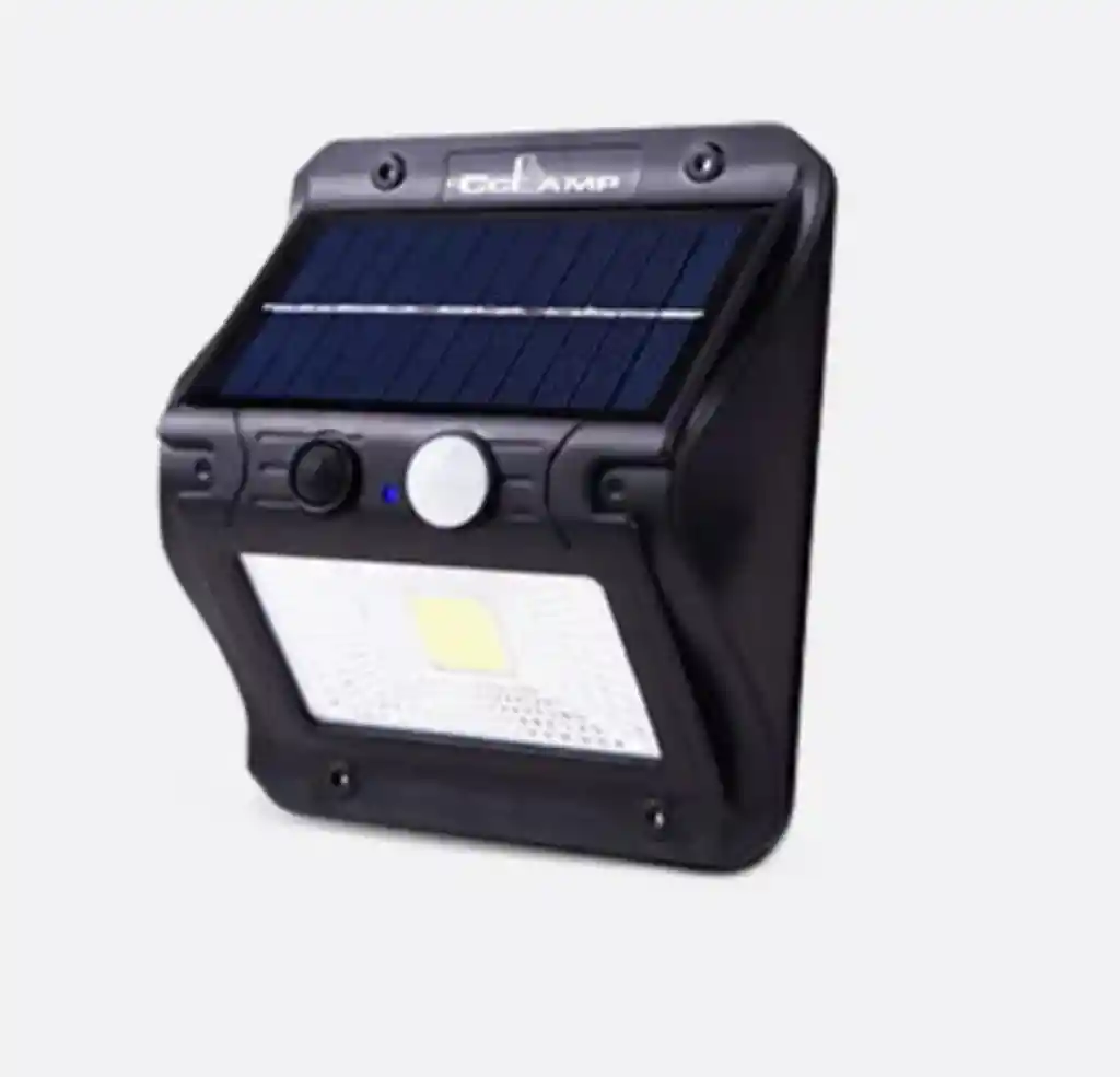 LAMPARA SOLAR •Tiene sensor incorporado. •Resistente a salpicadura de agua. 8W Modelo de producto: CL-108 Marca de producto: CCLAMP Potencia de luz: 8W Batería del producto: fosfato de hierro y litio Horas de trabajo: 8 ~ 16 horas A prueba de lluvia: IP65 Función: sensor de movimiento / sensor de luz / Bluetooth Rango de uso: puerta exterior / jardín / carretera / parque
