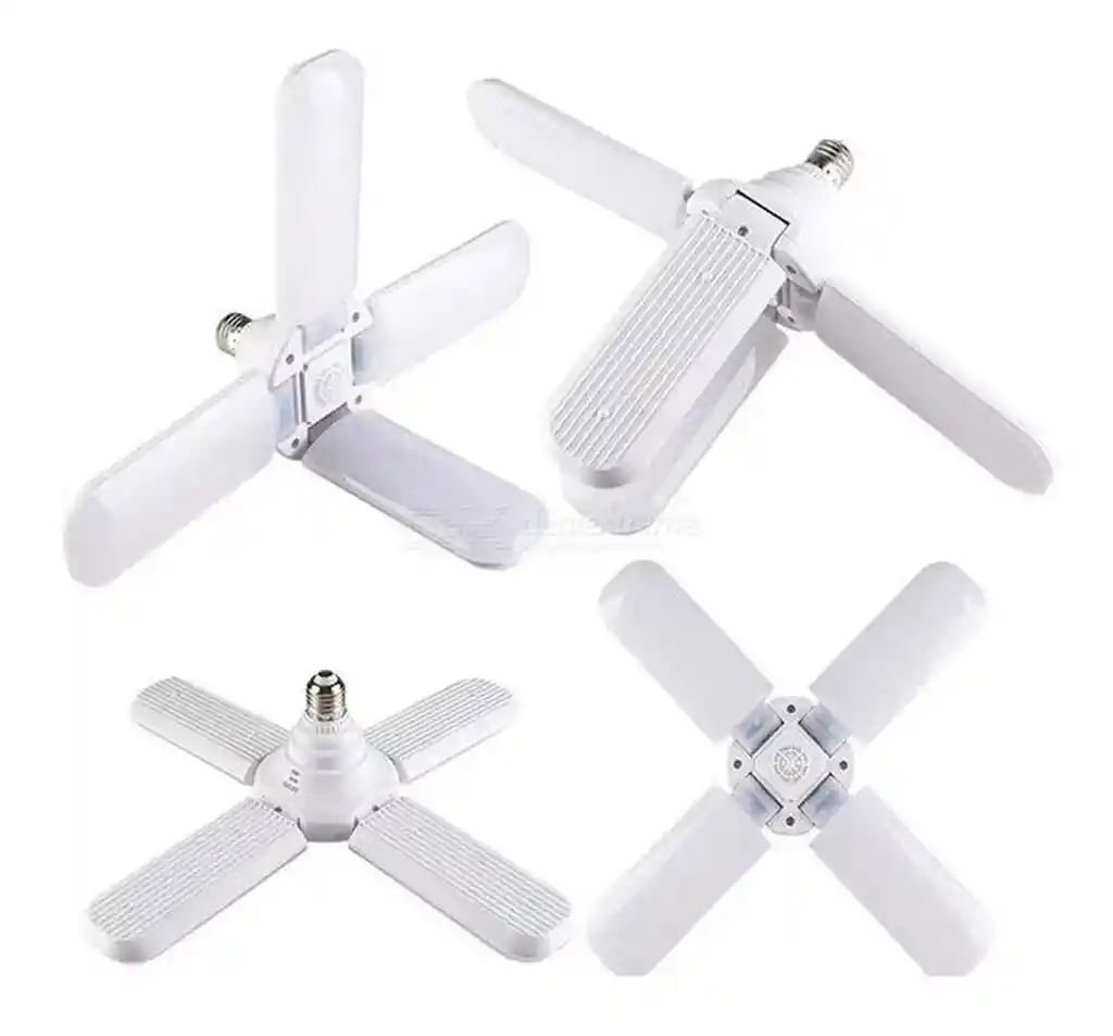 Lámparas Led Bombillos Lamparas De Techo Decorativos 4 Aspas Bombilla plegable de 50 W y 6500 K, luz blanca. Genera 4500 lúmenes de luz para tu garaje, zona de almacenamiento, almacén, sala de juegos. Diseño plegable que te permite dirigir la luz según lo necesites. Se puede utilizar 90° para enfocar la iluminación hacia abajo, 4 aspas de iluminación+ 1 luz de cúpula central. Con una cobertura impresio CARACTERÍSTICAS Material -La luz está hecha de material de PVC de alta calidad, viene con un buen efecto de • Distancia entre luces: 1 Rosca del bombillo: E27 Cuenta con bluetooth: No Nivel de protección: IP65 Material: ABS Consumo equivalente: 50 ¿El producto funciona e incluye pilas?: No Vida útil: 1 Incluye bombillo: No Tipo de bombillo: Ampolleta no inteligentes Color de luz: Fría Cuenta con sensor: No Tipo de Pila: No Aplica Tipo de lámpara cadena: Cinta Led País de Origen: China Flujo luminoso: 1 Wifi: No Potencia: 40 W Color: BLANCO Tecnología del bombillo: Led Tipo: Luz fría Alimentación: AC/DC Voltaje: 110 V Estilo deco: Clásico Alto (cm): 11 Ancho (cm): 7.5 Ancho (cm): 11 Largo (cm): 12 Respaldo y garantías en todos nuestros artículos ventas por mayor y al detal.