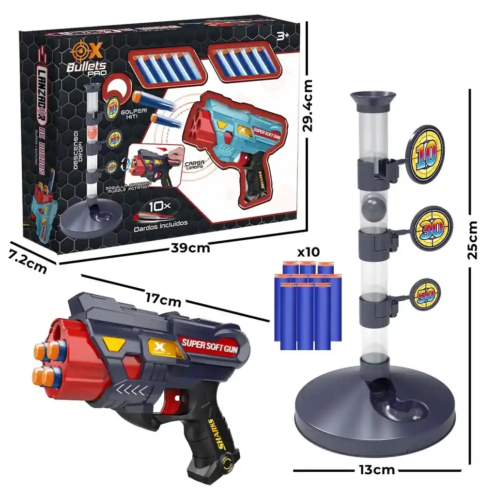 Set lanzador de dardos. La categoría de OX Bullets tiene increíbles juguetes perfectos para tener momentos llenos de aventura y diversión, pondrás a prueba y afinarás tu puntería para dar en el blanco, lanzando dardos que alcanzan largas distancias. Recomendable para niños mayores de 3 años, hecho de material no toxico y confiable para la seguridad de nuestros niños, excelente calidad en el material y manejo, gran diseño para una confortable experiencia de rescate. Siempre buscamos la innovación en nuestros productos, desarrollando las capacidades cognitivas y motoras de los niños para su interacción con el medio que los rodea. Compatible con marcas lideres. Soporte online 24 / 7. Set de Dardos x 12 pzas Los productos están garantizados por defecto de materiales y mano de obra por un período de 30 días.