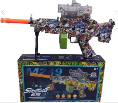 El Shooting Elite M249 Graffiti es un lanzador recreativo infantil diseñado para actividades al aire libre. Su estética multicolor tipo graffiti y su estructura inspirada en el estilo M249 lo convierten en un juguete llamativo, seguro y muy dinámico. Funciona con un sistema eléctrico interno que permite disparo automático, alimentado por gel balls hidratables que se fragmentan al contacto, reduciendo el impacto y aumentando la seguridad para niños desde los 8 años. Incluye accesorios desmontables como bipode, mira decorativa y cargador tipo caja, que permiten personalizar la experiencia de juego. Especificaciones Dimensiones y construcción • Longitud total: 580–620 mm (dependiendo de accesorios) • Altura con depósito: 260–300 mm • Ancho promedio: 60–75 mm • Peso: 600–850 g • Cuerpo: Polímero ABS reforzado • Cañón: ABS con guía interna • Accesorios: ABS moldeado (mira, bipode, cargador decorativo) • Acabado: Gráficos tipo graffiti impresos en vinilo térmico Sistema de munición • Tipo de munición: Gel balls 7–8 mm • Capacidad del depósito: 300–500 unidades • Velocidad aproximada: 45–65 m/s • Alcance efectivo: 12–20 m • Alimentación: Gravedad + rotor eléctrico interno Sistema eléctrico • Alimentación: Batería recargable (Li-ion 3.7 V o 7.4 V) • Recarga: Cable USB incluido • Motor: Micro-motor DC de alta rotación • Consumo: 3.5–6 W en operación • Modo de disparo: Automático continuo Accesorios incluidos • Depósito transparente superior • Cargador decorativo estilo caja (no funcional) • Bipode plegable desmontable • Mira superior decorativa • Cañón frontal naranja de seguridad • Cable USB de carga Seguridad • Munición de gel biodegradable de baja dureza • Cañón naranja para diferenciación visual como juguete • Materiales sin bordes afilados • Uso recomendado para mayores de 8 años con supervisión Características • Sistema eléctrico automático para disparo continuo. • Gran capacidad gracias al depósito superior. • Diseño multicolor tipo graffiti de alta resistencia al desgaste. • Estructura ligera en ABS, fácil de maniobrar por niños. • Accesorios desmontables para estilo y personalización. • Cañón naranja para mayor seguridad en exteriores. • Operación simple y mantenimiento mínimo. Beneficios • Permite sesiones largas de juego sin esfuerzo manual. • Ideal para actividades recreativas al aire libre. • Uso seguro gracias a gel balls suaves y fragmentables. • Diseño ergonómico que reduce la fatiga. • Personalizable con accesorios incluidos. • Fácil limpieza y recarga. Modo de uso Hidratar las gel balls durante 3–4 horas hasta alcanzar 7–8 mm. Insertar la batería y verificar la conexión. Llenar el depósito superior y fijarlo correctamente. Instalar accesorios (bipode, mira, cargador decorativo). Encender o presionar el gatillo para activar el motor. Jugar en exteriores apuntando a zonas seguras. Al terminar, retirar batería y vaciar el depósito. Recargar mediante cable USB incluido. Guardar en un lugar seco.