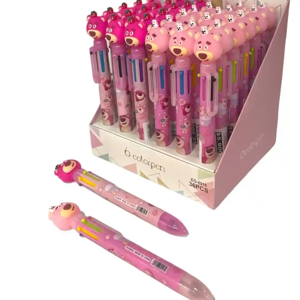 ¡Atrapa la atención con este lapicero que ofrece 6 colores en diseños divertidos! ¡Nunca más pierdas tiempo buscando el color adecuado para tus notas o dibujos! ¡Haz que tú y tus trabajos destaquen con este versátil lapicero!
