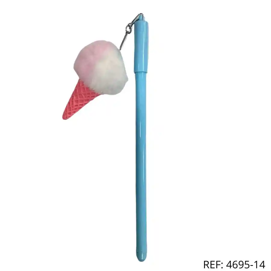 Esfero rosa con llavero de cono helado azul. Útil, original y perfecto para notas coloridas y creativas.