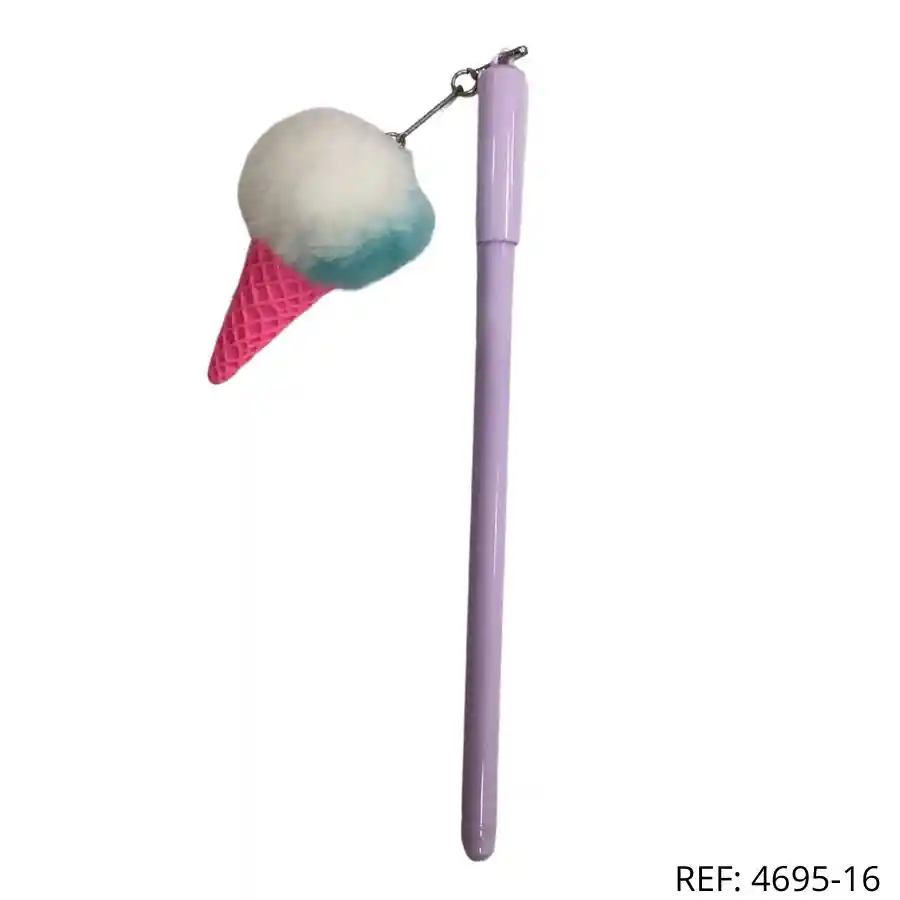 Esfero lila con llavero de helado peluche, diseño suave y divertido. Ideal para regalar o decorar.
