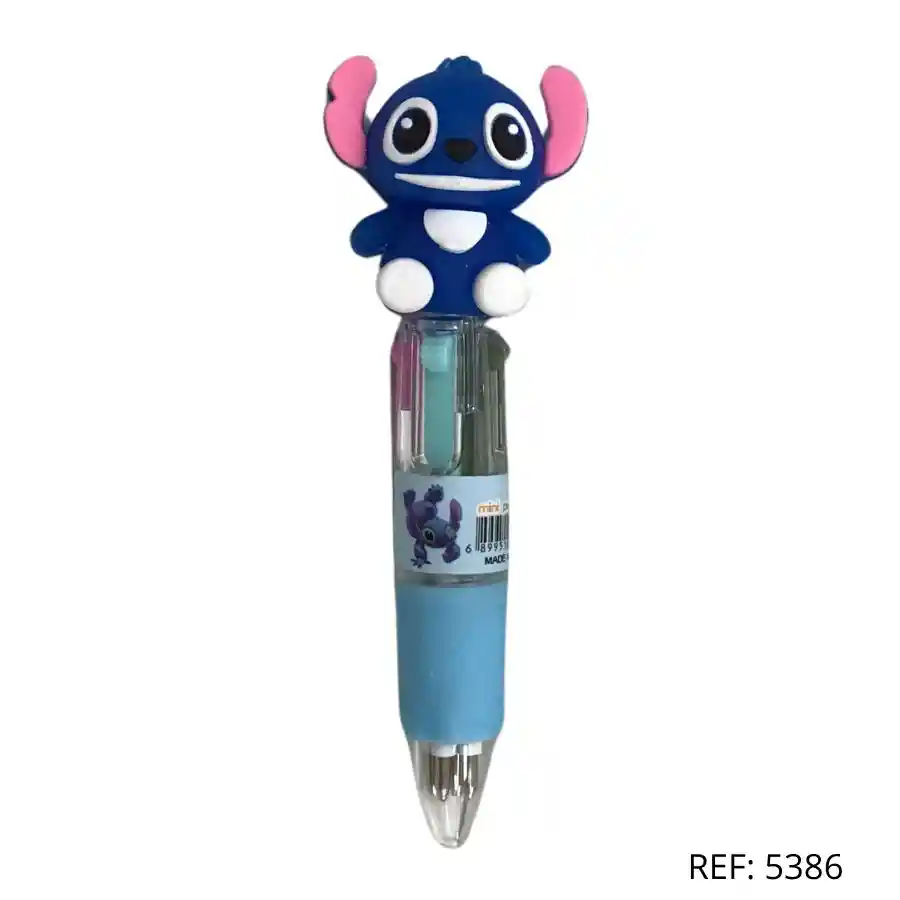 Bolígrafo multicolor con figura Stitch. Ideal para coleccionar y llevar a clases.