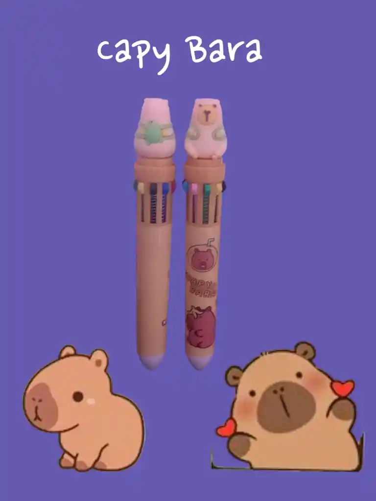 Divertido lapicero motivo Capy Bara para llevarlo donde quieras. Esfero - Boligrafo - Lapicero Multicolor Contiene 10 tintas de colores diferentes