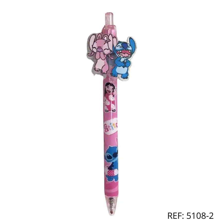 Esfero rosado Stitch y Angel, ideal para escribir con un toque tierno y divertido.