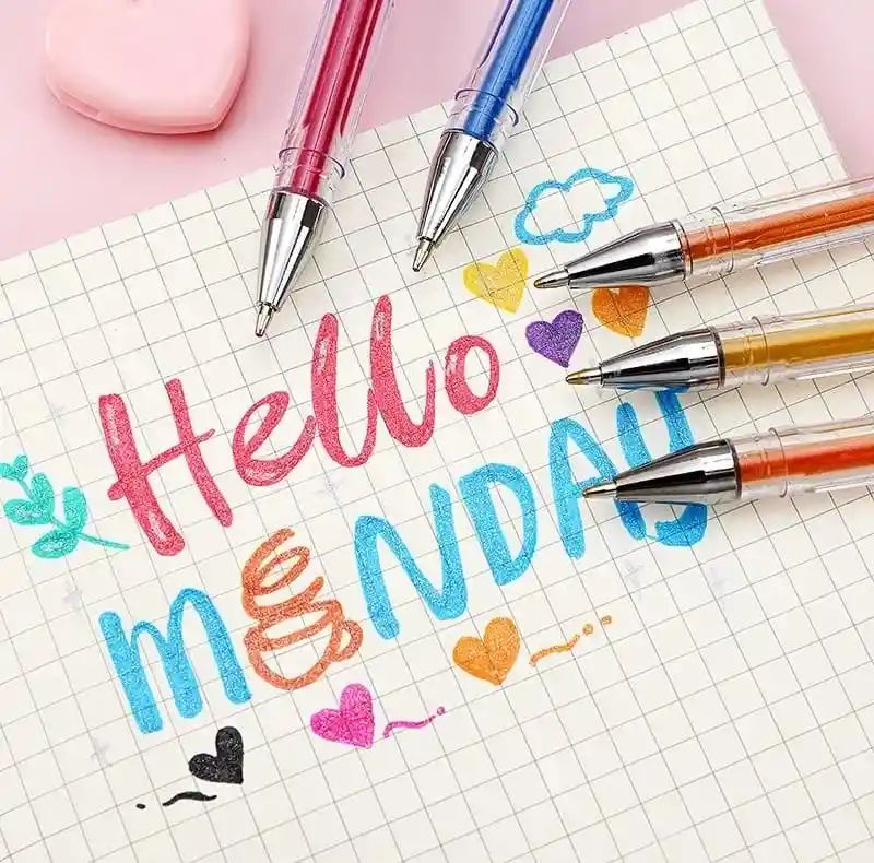 ¡LLENA DE COLORES TUS NOTAS CON ESTOS BOLIGRAFOS EN GEL! Los colores no se corren ni se desvanecen Su tinta en gel no es tóxica y es 10%% libre de ácido y contiene un 30 % más de gel para un uso más prolongado. Nunca tienes que preocuparte de que estos bolígrafos de gel para colorear dañen tus suministros de papel. CARACTERISTICAS -Material: plástico -Borrable o no: No -Uso: bolígrafo escolar y de oficina -Característica de la tinta del bolígrafo de gel: Normal -Punto de Escritura: 0,09mm -El paquete incluye: 12 UND