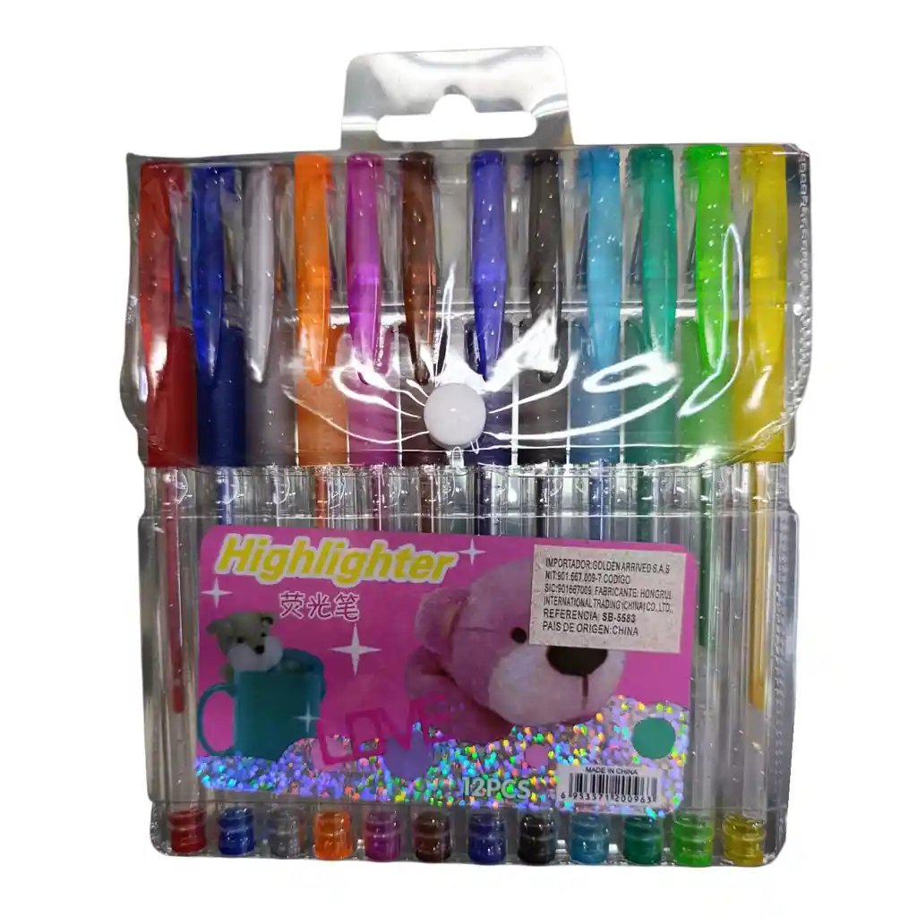 Marcadores de Gel con Brillos x 12 unidades colores surtidos