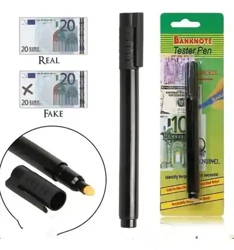 EL LAPIZ DETECTOR DE BILLETES FALSOS UTILIZAN UN QUÍMICO ESPECIALMENTE FORMULADO QUE DETECTA MONEDA FALSA AL INSTANTE. -SIMPLEMENTE PRESIONE LA PUNTA DE LA PLUMA PARA EL PROYECTO DE LEY-SI SE VUELVE AMARILLO O BORRAR EL BILL ES BUENO, SI RESULTA NEGRO O MARRÓN EL PROYECTO DE LEY ES SOSPECHOSO. -LAS INSTRUCCIONES IMPRESAS EN LA PLUMA. -FUNCIONA EN LA MAYORÍA DE LAS MONEDAS DE TODO EL MUNDO.
