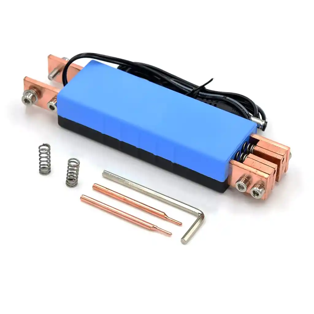 Este es un tipo de bolígrafo de soldadura por puntos de buena calidad, adopta una barra de cobre gruesa, ayuda a mejorar la eficiencia de trabajo y es adecuado para un largo tiempo de servicio. Diseño Integrado, bonito y limpio, con efecto de radiación de calor fino. Hay resortes duales en el mango, Cada bolígrafo de soldadura puede expandirse y contraerse de forma independiente. Interruptor de límite integrado, funcionamiento con una sola mano, no necesita pedal. Puedes probarlo. Características: Adopta una barra de cobre gruesa, ayuda a mejorar la eficiencia de trabajo y es adecuada para un largo tiempo de servicio. Diseño Integrado, bonito y limpio, con efecto de radiación de calor fino. Hay resortes duales en el mango, Cada bolígrafo de soldadura puede expandirse y contraerse de forma independiente. Interruptor de límite integrado, funcionamiento con una sola mano, no necesita pedal. Con sensaciones cómodas en la mano, puede soportar un uso prolongado, estable y confiable, resistente al desgaste y ahorro de esfuerzo. Adecuado para la máquina de soldadura por puntos con batería 18650. Especificaciones: Nombre: bolígrafo de soldadura por puntos Color: blanco, azul, verde, negro (opcional) Tamaño del artículo: 155x45x25mm/6,10x1,77 x pulgadas Tamaño del paquete: 200x100x50mm/7,87x3,94 x pulgadas CON LA COMPRA LLEVAS: 1x ELECTRODO SOLDADOR BATERIA 18650 AZUL Y NEGRO