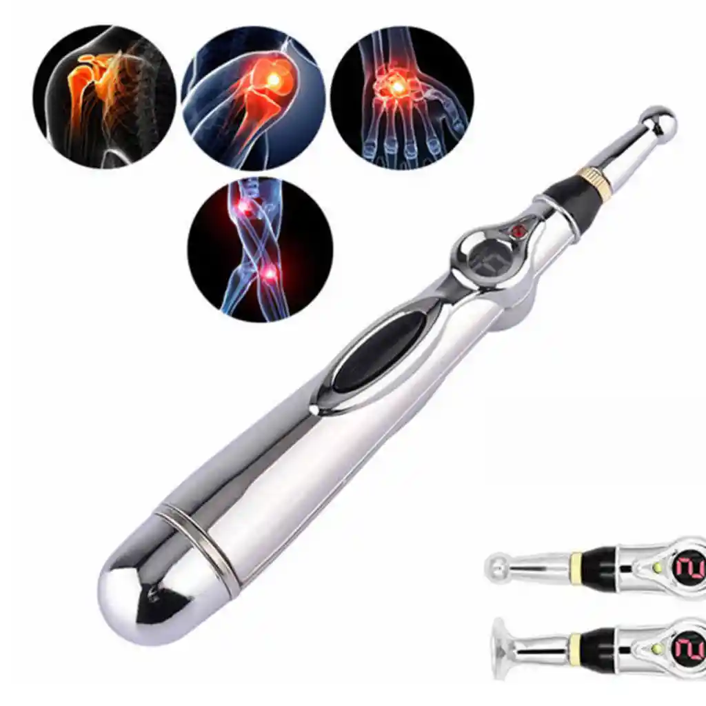 El lápiz masajeador terapéutica eléctrica posee 9 niveles de intensidad eléctrica graduables. Este masajeador utiliza los principios de la acupuntura usando pequeños choques eléctricos en nueve niveles de intensidad diferentes para su comodidad , gimnasia pasiva, terapia para tratamiento de dolores musculares de tejido profundo y semiprofundo, dolores de espalda, masaje facial rejuvenecedor antiarrugas , terapia y masaje corporal. incluye 2 frascos de gel conductor, 2 cabezas intercambiables, manual de uso e instrucciones.