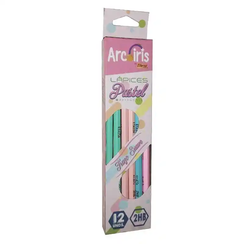 Caja de lapiz negro 2HB hexagonal pastel de 12 unidades