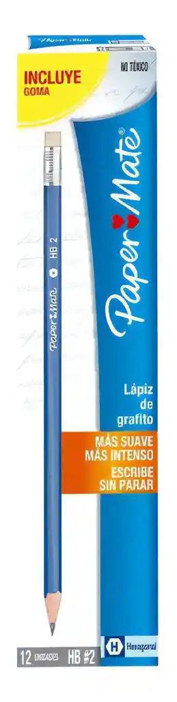 La caja contiene 12 unidades El Lápiz Grafito Papermate HB #2 es el compañero perfecto para tus tareas diarias, ya sea en la oficina, en la escuela o en casa. Este lápiz de alta calidad, fabricado por la reconocida marca Paper Mate, ofrece una escritura suave y precisa gracias a su graduación HB. Su diseño clásico incluye una goma de borrar en el extremo, permitiéndote corregir errores con facilidad. No es un lápiz pastel ni acuarelable, pero su rendimiento y durabilidad lo hacen ideal para cualquier tipo de escritura o dibujo.