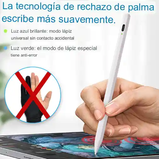 CARACTERISTICAS ✅ Funciona en celulares de cualquier marca, tablet y ipad ✅ compatible con IOS, Android Y pantalla táctil de teléfono móvil Android, teléfono móvil Apple y uso común en todas las marcas y modelos de dispositivos de pantalla capacitiva plana ✅ tiempo trabajo 10 a 14 horas ✅ tiempo de carga 80 a 100 minutos ✅ bateria Lithium-polymer 130mAh 5V/0.1A ✅ ahorro inteligente auto apagado despues de 5 minutos de no uso ✅ peso 13.4G ✅ material aleacion de aluminio ✅ puerto de carga USB to type c ✅ Diámetro de la punta del bolígrafo Φ 1,5 mm * Diámetro del cuerpo del bolígrafo Φ 9,1 mm * Longitud total: 165,06 mm de longitud total CONTENIDO DE LA CAJA pencil optico cable puntas repuesto manual