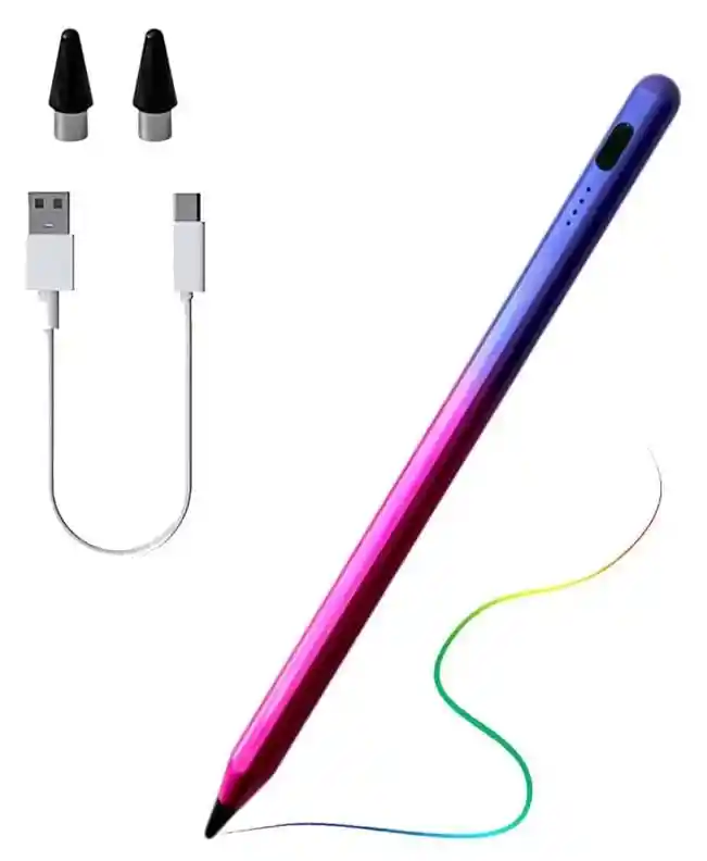 ¿Buscas la herramienta perfecta para transformar tu tableta o teléfono en un lienzo creativo y productivo? Presentamos nuestro Lápiz Óptico Universal Premium, diseñado para ofrecer una experiencia de escritura y dibujo incomparables. Di adiós a los dedos imprecisos y descubre la precisión y la fluidez que te mereces. Características Destacadas: Tecnología de Rechazo de Palma Avanzada: Escribe y dibuja de forma natural, apoyando tu mano cómodamente en la pantalla sin preocuparte por toques accidentales ni marcas no deseadas. Es como escribir en papel, pero con las infinitas posibilidades de lo digital. Compatibilidad Universal Genuina: No te limites. Este Stylus Pen funciona sin esfuerzo con todas las pantallas táctiles capacitivas, sin necesidad de Bluetooth. Desde el último iPad Pro y iPhone hasta teléfonos y tabletas Samsung, Google Pixel, LG, Sony y más. Una sola herramienta para todos tus dispositivos. Rendimiento de Escritura Fluido y Preciso: Experimenta una precisión milimétrica con una punta de alta sensibilidad que ofrece un trazo continuo y fluido, sin retrasos molestos ni deslizamientos inoportunos. Perfecto para tomar notas detalladas, bocetar con fineza o navegar con facilidad. Batería de Larga Duración: Disfruta de más de 10 horas de funcionamiento continuo con una sola carga, ideal para largas sesiones de trabajo o estudio. El puerto de carga rápida Tipo-C asegura que estés listo en poco tiempo. Diseño Elegante y Duradero: Con su cuerpo metálico de alta calidad y su atractivo acabado en degradado de color metálico (azul a rosa), este lápiz es tanto una declaración de estilo como una herramienta funcional. Su diseño ergonómico de 16.5 cm de largo se adapta cómodamente a tu mano.