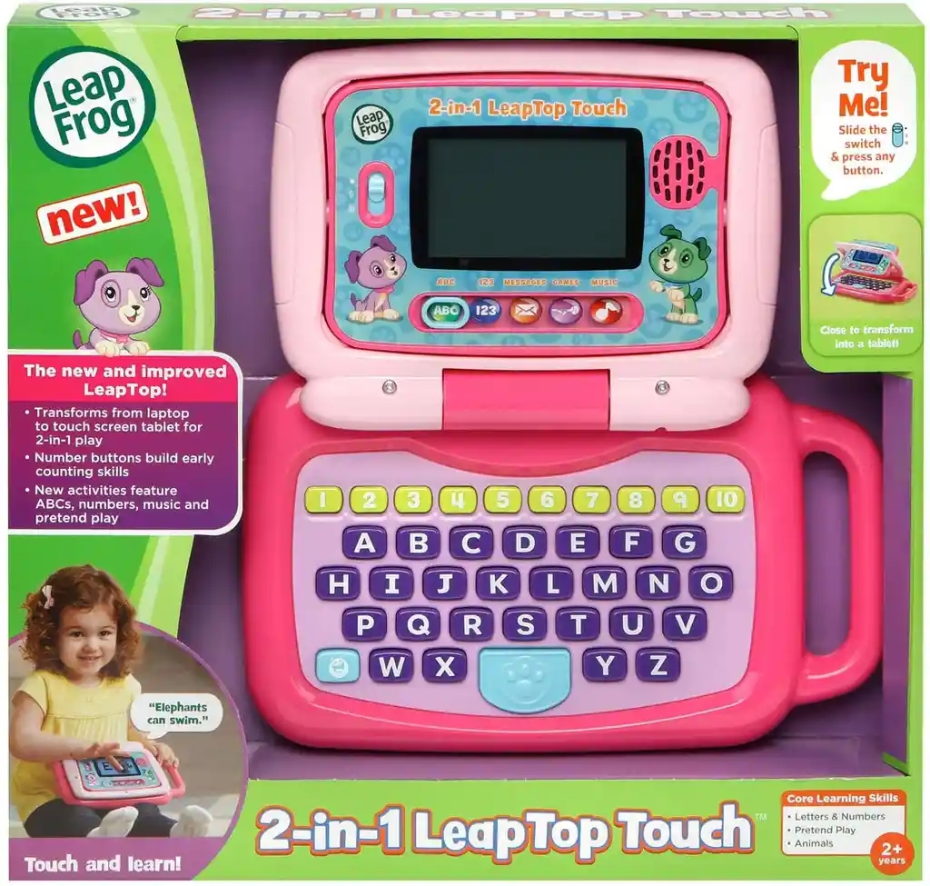La pantalla de Leaptop más grande, con 26 animaciones animales. Toca en 4 modos de aprendizaje, incluidos ABC, Mensajes, Juegos y Música. En el modo ABC los niños pueden escuchar la letra, el sonido de la letra y una palabra usando esa letra. En el modo Mensaje, los niños pueden fingir enviar y recibir correos electrónicos con Scout. En el modo Juegos, juega divertidos juegos de cartas y triviales para reforzar el aprendizaje. En el modo Música, elige entre 16 canciones y melodías divertidas. IDIOMA Inglés.