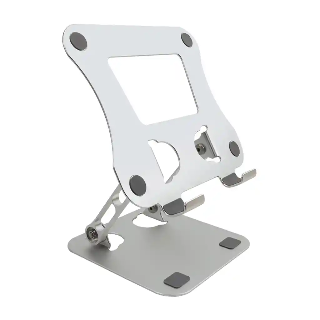ALTURA AJUSTABLE PARA MEJOR ERGONOMÍA Este soporte permite ajustar la altura desde 3.5 cm hasta 27 cm, facilitando una postura más cómoda y reduciendo la tensión en cuello y espalda durante el uso. DISEÑO MULTIÁNGULO PARA MAYOR COMODIDAD Cuenta con ajuste de múltiples ángulos, lo que permite adaptar la inclinación según tus necesidades para trabajar, estudiar o ver contenido. ESTRUCTURA EN ALUMINIO RESISTENTE Y LIVIANA Fabricado en aluminio, ofrece una combinación ideal entre resistencia y ligereza, garantizando estabilidad y durabilidad en el uso diario. ESPACIO PARA TECLADO Y MEJOR ORGANIZACIÓN Su diseño permite dejar espacio libre debajo para ubicar el teclado, ayudando a mantener el área de trabajo más organizada. COMPATIBLE CON PORTÁTILES Y TABLETS HASTA 13” Es ideal para laptops livianos y tablets de hasta 13 pulgadas, ofreciendo un soporte estable y seguro para equipos compactos.