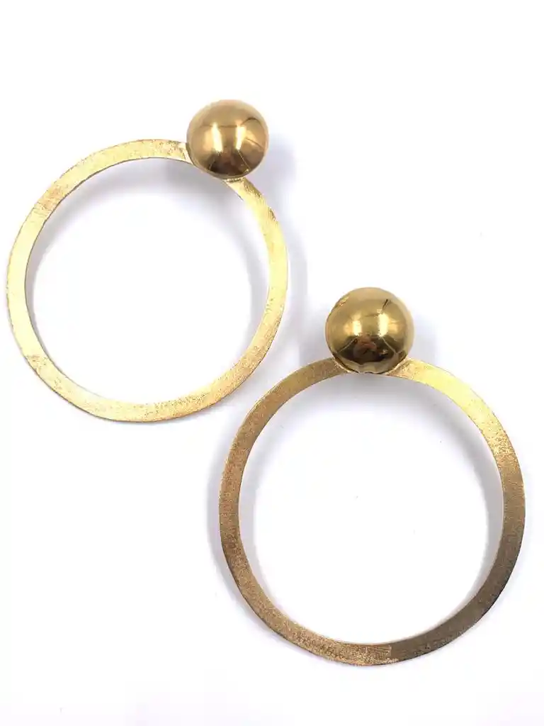 Argollas Grandes Estas argollas son el resultado de la creatividad de nuestro equipo: son Elaboradas A Mano Con Bronce Y Baño En Oro. Diámetro Aproximado De 8cm