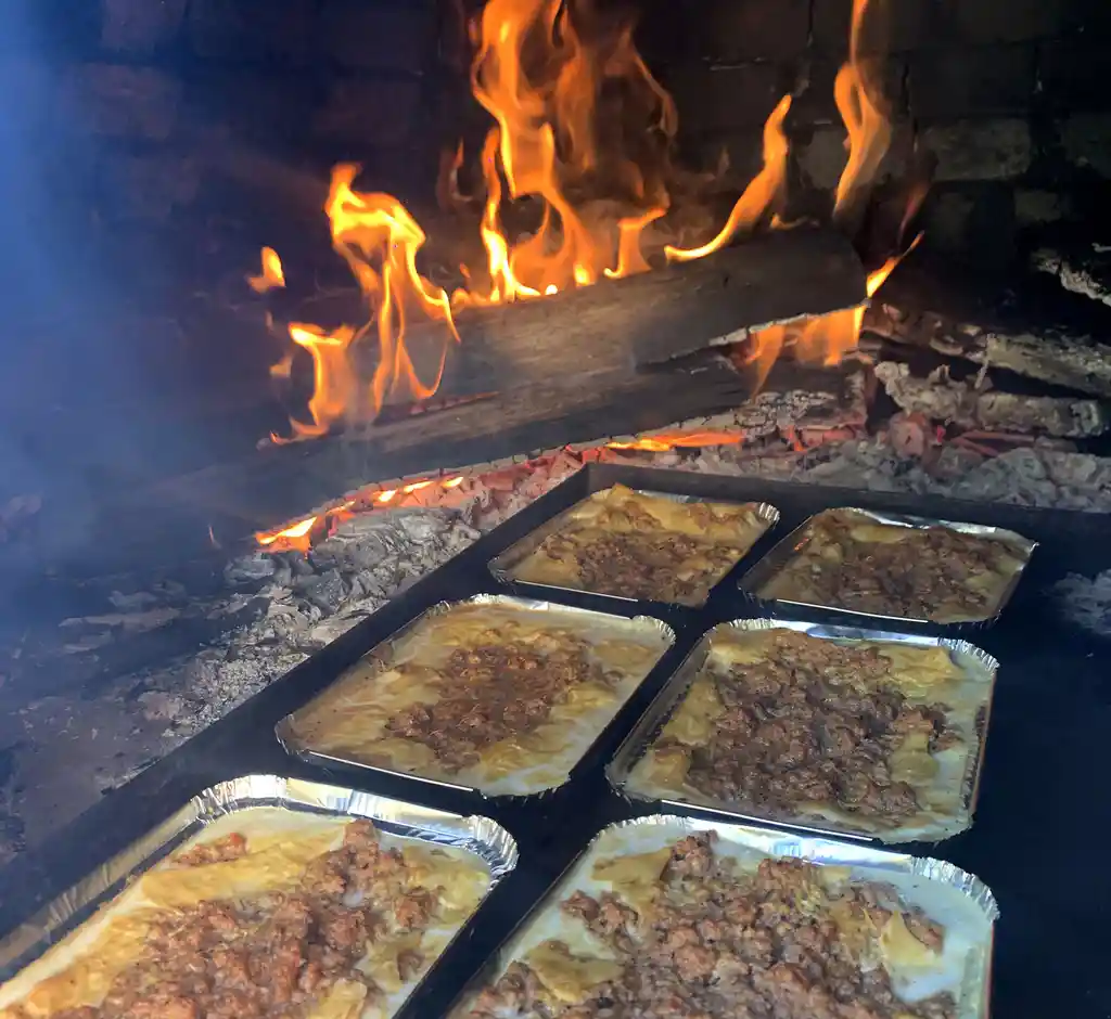 Lasaña pre-cocida en horno de leña, salsa napolitana, salsa bechamel, carne de cerdo y res magra, pollo y champiñoñes con queso parmesano y queso mozarella, 100% natural, sin conservantes ni sustancias añadidas.