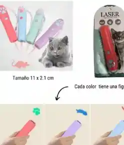 Es un puntero láser de juguete diseñado para la estimulación mental y física de mascotas, principalmente gatos y perros. Proyecta figuras como huellas, ratones o formas temáticas, lo que mantiene a los animales activos, entretenidos y fortalece el vínculo afectivo con su dueño.