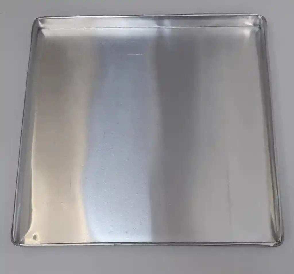 Lata en aluminio ideal para galletas y demás preparaciones en repostería y panadería. Dimensiones 30X30X2cm.