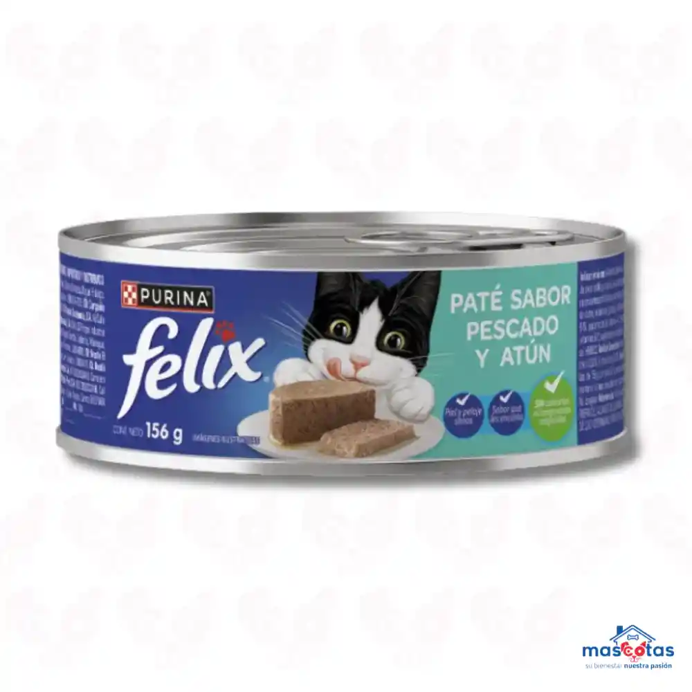 La lata Felix Paté de Pescado y Atún (156g) es un alimento húmedo completo y balanceado para gatos adultos, caracterizado por una textura suave y cremosa, alta palatabilidad, y un perfil nutricional rico en proteínas (mín. 11%), taurina, omega-6 y humedad (78%) para la hidratación Características y Beneficios Principales: Sabor y Textura: Combinación de pescado blanco y atún con textura de paté, muy apetecible incluso para gatos exigentes. Nutrición Completa: Diseñado para satisfacer las necesidades nutricionales diarias con vitaminas, minerales y proteínas de alta calidad. Hidratación: El alto porcentaje de humedad ayuda a mantener la salud renal y urinaria. Salud Integral: Fortalece la piel y el pelaje gracias a los ácidos grasos omega-6. Versatilidad: Apto para gatos adultos, cachorros y senior. Ingredientes Principales: Agua suficiente para el proceso, carne de pescado blanco, menudencias/vísceras de pollo, pavo o cerdo, hígado de cerdo, carne de atún, arroz, goma guar, minerales (calcio, fósforo, hierro) y vitaminas (E, A, B1, D3). Recomendaciones de Uso: Ración: Aproximadamente una lata de 156g por cada 2.8 kg de peso corporal, distribuida en varias comidas. Conservación: Almacenar en lugar fresco y seco. Una vez abierta, mantener refrigerada (4°C) y consumir preferiblemente antes de 48 horas.