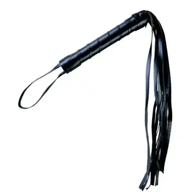 Látigo de cuero con apliques de metal, con múltiples colas y un tamaño ideal para cualquier gusto.
