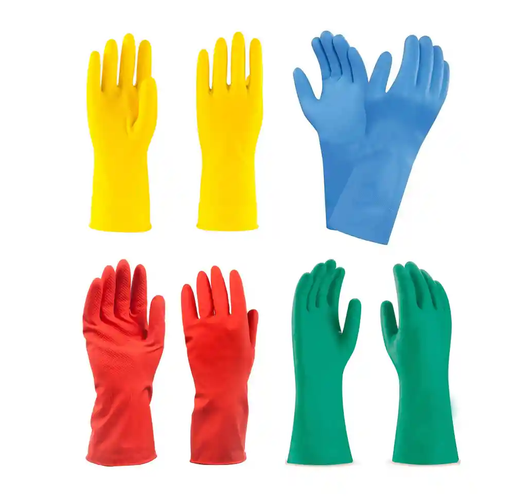 La limpieza es una de muchas tareas del hogar que se realizan con productos químicos perjudiciales al contacto con la piel, por eso proteger tus manos es esencial en medio de estas labores. Traemos a aquí esta gran oferta de cuatro pares de guantes de caucho especiales para un mejor agarre y mayor protección. Además, su material es altamente resistente y de mayor durabilidad ante el uso frecuente ya sea para el lavado de loza o limpieza general. Su material 100% látex natural antideslizante que se adapta a tu forma anatómica dando libre movilidad. En la limpieza diaria es poco recomendable el uso del mismo par de guantes para actividades como el aseo en la cocina y la limpieza del baño, ya que esto puede transferir microorganismos que producen enfermedades e infecciones. Por eso es importante tener una forma de diferenciar claramente los guantes para cada tarea y la mejor es distribuirlos con colores diferentes. Por ejemplo, rojos únicamente para el aseo del baño, amarillo loza, azules para lavar la ropa. Por esto mismo esta gran oferta te beneficiará a ti y tu bolsillo ofreciéndote un par de guantes para cada tarea del hogar. Características principales: Solo disponible talla 8 Material resistente y de alta calidad Diseño antideslizante de látex 100% natural Mejor agarre y mayor protección Elementos incluidos: Par de guantes Amarillo Par de guantes Azul Par de guantes Rojo Par de guantes Verde Dimensiones: Tallas: 7 - 7 ½ - 8 - 8 ½ - 9 - 10 Garantía: Cinco días calendario para reportar defectos de fábrica. Los términos y condiciones van incluidos dentro de la caja del producto.