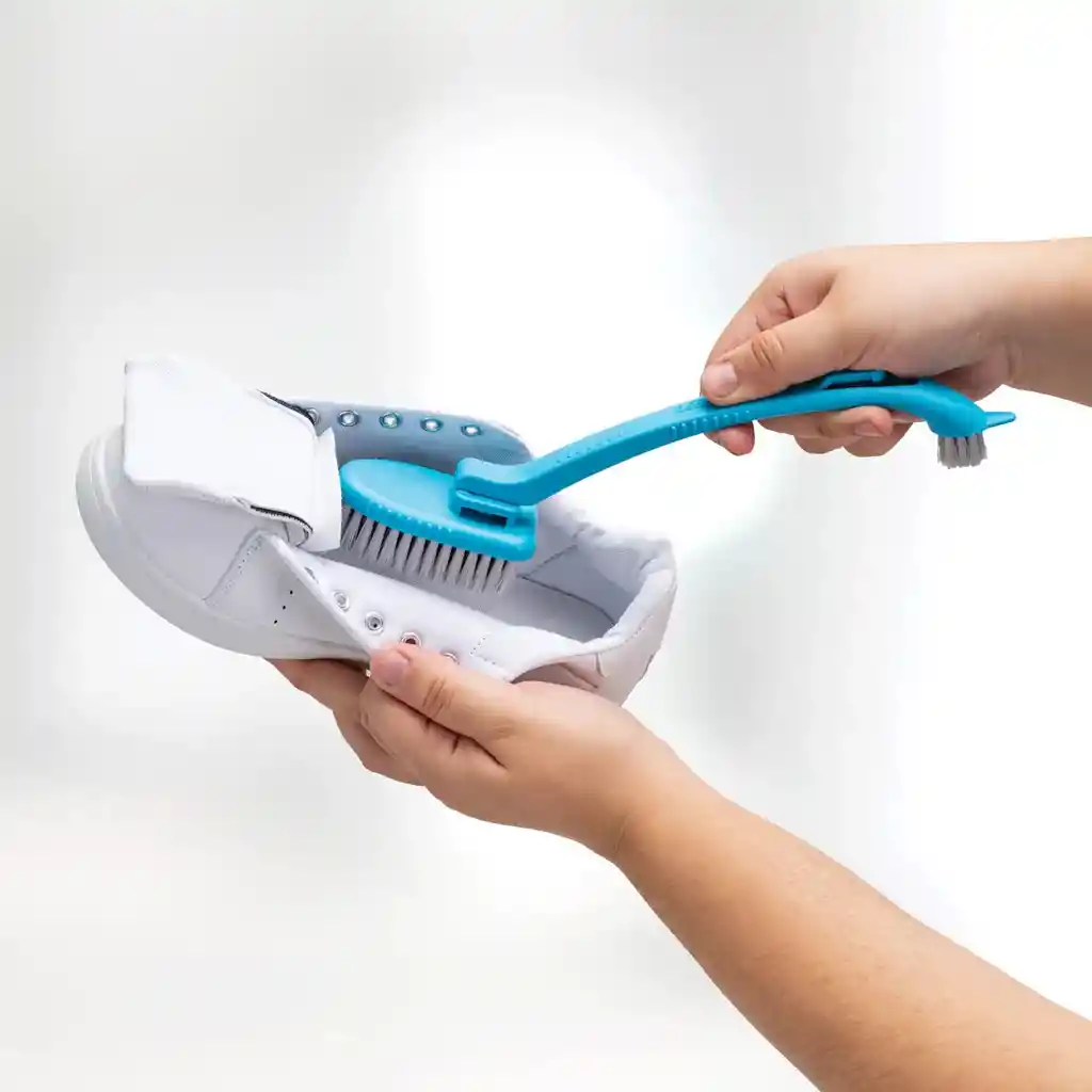 Mantén tus tenis siempre limpios con el Lava Tenis Pro Betterware. Una solución con todo lo necesario para dejar tus tenis como nuevas: cepillo grande para superficies amplias, cepillo pequeño para esquinas, puntilla para suciedad o piedras atoradas y limpiacordones. Los cepillos son desmontables para mayor comodidad y su diseño ergonómico se adapta perfectamente a la mano.