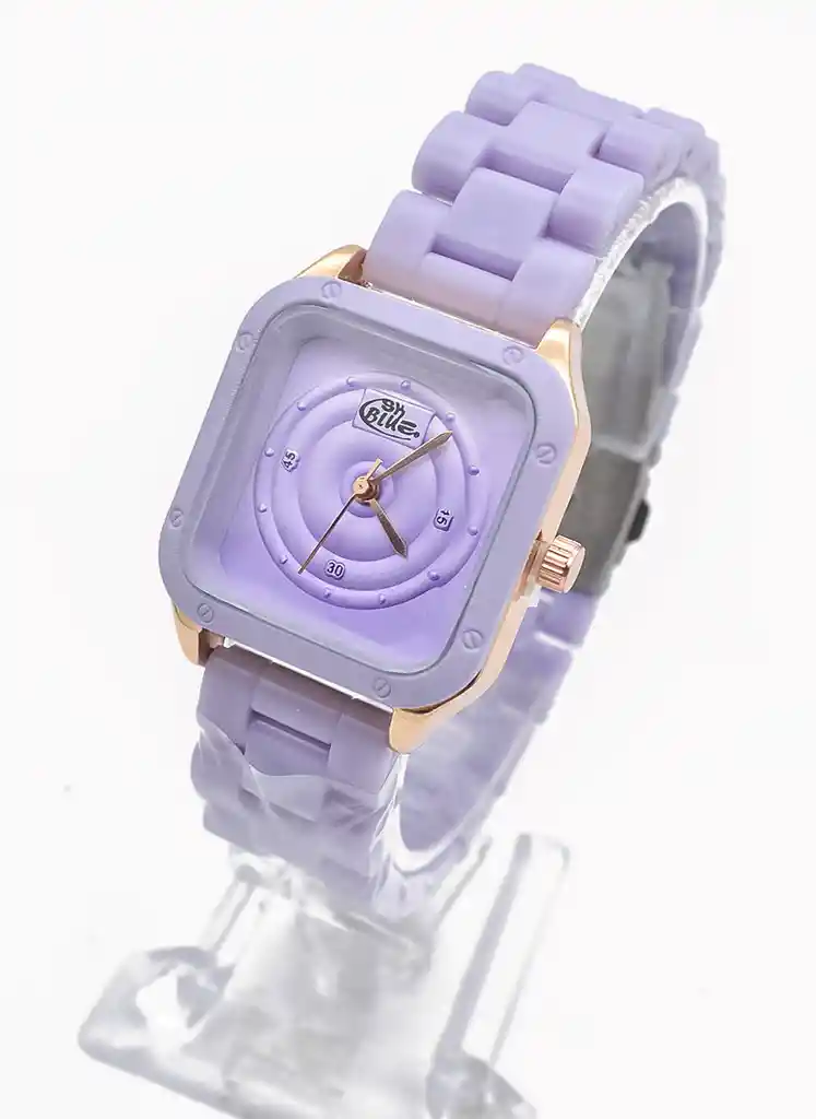 ¡Dale un toque de color y geometría a tu estilo! Presentamos el nuevo Lavender Square, un reloj que rompe con lo tradicional. Con su diseño cuadrado minimalista y su tono lila pastel, es el accesorio definitivo para quienes buscan un look moderno, femenino y lleno de personalidad. 🔥 ¿Por qué es un "Must-Have"? 🟪 Diseño Vanguardista: Caja cuadrada única con detalles de tornillería estética en los bordes. 🌹 Toque de Lujo: Cuerpo metálico con acabado en Oro Rosa que resalta el color lavanda. 🍥 Dial Único: Esfera con relieve circular tipo "vórtice" que le da profundidad y un aire futurista. 🦾 Confort Pro: Pulso de eslabones acrílicos de alta calidad, ligero y suave al tacto.