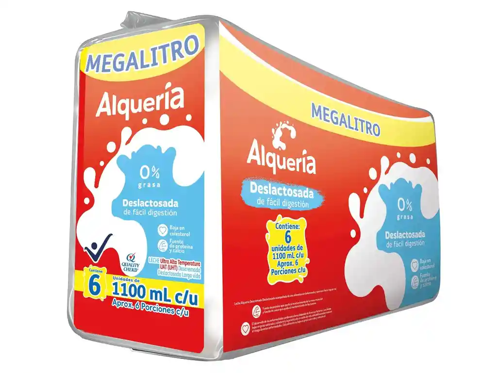 La Leche Alquería Deslactosada 0% Grasa en su presentación de 6 unidades de 1100 mL cada una es una alternativa ideal para quienes buscan disfrutar del sabor de la leche con menor contenido de grasa y sin lactosa. Gracias a su proceso de deslactosado, permite una digestión más fácil para personas con sensibilidad a la lactosa, manteniendo al mismo tiempo nutrientes importantes presentes en la leche. Su contenido reducido de grasa la convierte en una opción adecuada para quienes prefieren productos más ligeros dentro de su alimentación diaria. Puede consumirse sola, acompañar el desayuno, mezclarse con café, chocolate o utilizarse en la preparación de batidos, cereales y diferentes recetas caseras. Su formato de varias unidades resulta práctico para el consumo familiar y facilita mantener siempre disponible este alimento en el hogar. Es una opción versátil que combina nutrición, practicidad y un sabor suave que se adapta a distintos momentos del día. ______________________________________________________ ________ Somos QUICK MART Comercializadora y Distribuidora de productos Nacionales e Importados, calidad garantizada 100% original. Dentro de nuestro portafolio de productos podrás encontrar licores (debidamente estampillados), alimentos, dulces, productos de aseo y mucho más de acuerdo a tu necesidad. Estamos ubicados en la ciudad de Bogotá, por medio de MERCADO ENVÍOS hacemos despachos a nivel nacional, si compras antes de la 14pm por MERCADO FLEX entregamos el mismo día (aplica solo para Bogotá), en horario extendido hasta las 10 p.m. Invitamos a nuestros clientes a visitar nuestra tienda virtual en MercadoShop con las mismas garantías de Mercado Libre, allí podrás conocer todo nuestro catálogo y encontrar promociones que solo aplican en nuestra tienda virtual. Las imágenes utilizadas son de referencia y por lo tanto la presentación del producto puede variar en el momento del despacho, el producto es el mismo ya el empaque depende de cada proveedor. ______________________________________________________________