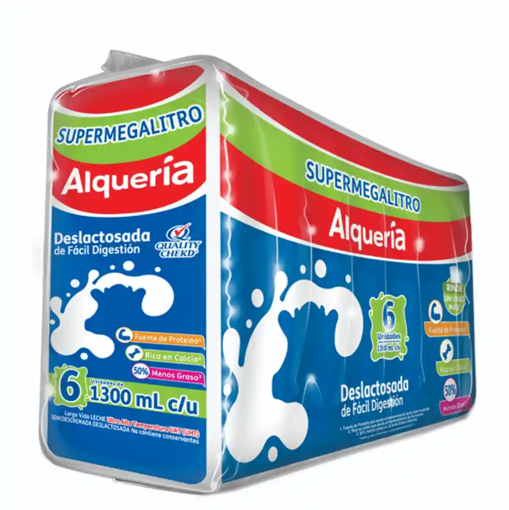 La Leche Alquería Deslactosada en presentación de 6 unidades de 1300 mL cada una es una opción práctica para quienes desean disfrutar del sabor y los beneficios de la leche con menor contenido de lactosa. Gracias a su proceso de deslactosado, permite una digestión más fácil para personas con sensibilidad a la lactosa, manteniendo el perfil nutricional característico de la leche. Es una fuente natural de calcio, proteínas y vitaminas que contribuyen a una alimentación equilibrada dentro de la dieta diaria. Su sabor suave y textura ligera la hacen ideal para consumir sola, acompañar el desayuno, preparar bebidas calientes, cereales o diferentes recetas en la cocina. El formato de varias unidades resulta conveniente para el consumo familiar, facilitando el almacenamiento y asegurando disponibilidad para diferentes momentos del día. Es un producto versátil que puede utilizarse tanto en preparaciones dulces como saladas, manteniendo siempre su calidad y frescura. ______________________________________________________ ________ Somos QUICK MART Comercializadora y Distribuidora de productos Nacionales e Importados, calidad garantizada 100% original. Dentro de nuestro portafolio de productos podrás encontrar licores (debidamente estampillados), alimentos, dulces, productos de aseo y mucho más de acuerdo a tu necesidad. Estamos ubicados en la ciudad de Bogotá, por medio de MERCADO ENVÍOS hacemos despachos a nivel nacional, si compras antes de la 14pm por MERCADO FLEX entregamos el mismo día (aplica solo para Bogotá), en horario extendido hasta las 10 p.m. Invitamos a nuestros clientes a visitar nuestra tienda virtual en MercadoShop con las mismas garantías de Mercado Libre, allí podrás conocer todo nuestro catálogo y encontrar promociones que solo aplican en nuestra tienda virtual. Las imágenes utilizadas son de referencia y por lo tanto la presentación del producto puede variar en el momento del despacho, el producto es el mismo ya el empaque depende de cada proveedor. ______________________________________________________________