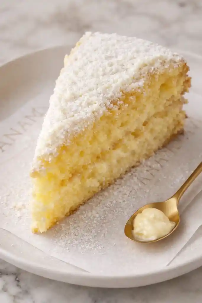 Pudin de vainilla con bizcocho esponjoso de dos capas, con un relleno y cubierta cremosa de leche Klim