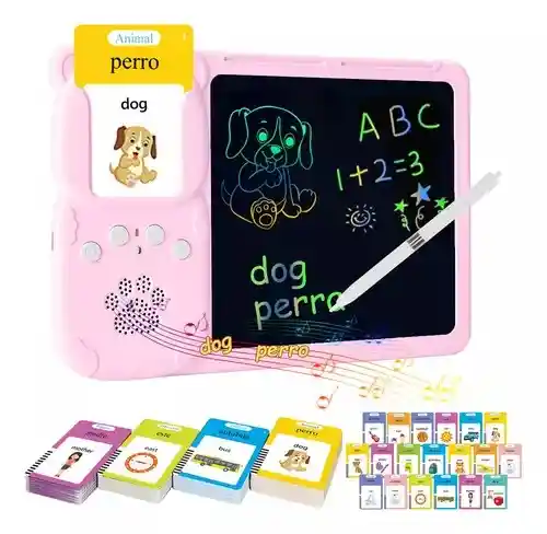 Set de Aprendizaje 2 en 1 para Niños: - Realismo Multisensorial: Estimulantes sonidos de animales y vehículos para un aprendizaje mejorado.para un total de 224 palabras - Pantalla Amigable para los Ojos: Pantalla LCD de 6.7 pulgadas que asegura una visualización cómoda y segura. - Diseño Centrado en el Usuario: Controles intuitivos, batería recargable y pizarra interactiva. - Construcción Segura para Niños: Fabricación de ABS no tóxico con bordes redondeados, apto para edades de 3 a 12 años. ESPECIFICACIONES: Colore: Rosa Material: ABS de alta calidad sin BPA Tamaño: 26 x 19 x 5.5 cm Edad adecuada: Más de 3 años EL PAQUETE INCLUYE: 1 x Tablero 1 x Lápiz 1 x Caja de Tarjetas 1 x Cable de Carga 1 x Manual de Usuario