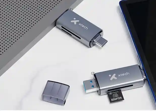 Lector de tarjetas SD y micro SD, perfecto para pasar fotos y videos desde cámaras a tu celular o computador. Cuenta con conexión USB-C y USB 3.0 con función OTG para uso práctico en cualquier dispositivo. Lee dos tarjetas al mismo tiempo con transferencia rápida y estable. Diseño compacto y resistente, ideal para uso diario.