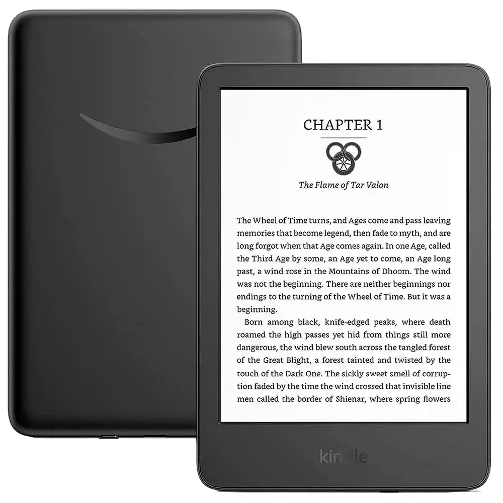 El Kindle es ligero y compacto, con una pantalla de 6" y 300 ppi para una lectura nítida y sin reflejos. Su luz frontal ajustable y el modo oscuro te permiten leer cómodamente en cualquier momento del día. Con una batería de hasta 6 semanas de duración y 16 GB de almacenamiento, puedes llevar miles de libros contigo. Accede a más de dos millones de títulos con Kindle Unlimited, incluyendo audiolibros. Fabricado con materiales reciclados, es una opción más sostenible sin sacrificar rendimiento. El Kindle es ideal para quienes buscan una experiencia de lectura pura y cómoda. Especificaciones: Pantalla: 6” Amazon con luz integrada, 300 ppi, escala de grises de 16 niveles. Dimensiones:157,8 x 108,6 x 8,0 mm. Peso: 158 g. Almacenamiento: 16 GB. Conectividad: Wi-Fi 2.4 GHz y 5.0 GHz con seguridad WEP, WPA, WPA2 y WPA3. Formatos compatibles: AZW3 AZW TXT PDF MOBI no protegido PRC HTML DOC DOCX JPEG GIF PNG PMP y Audible AAX. Accesibilidad: VoiceView con audio Bluetooth para navegación y lectura con text-to-speech (solo en inglés). Opción de invertir blanco y negro, ajustar tamaño de fuente, interlineado y márgenes. Batería: Hasta 6 semanas con una sola carga (media hora de lectura al día, wireless apagado, luz en nivel 13). Carga: Aproximadamente 4 horas con cable USB desde un ordenador, o 2 horas con un cargador de 9W. Generación: 11ª generación, versión 2022. Garantía: 12 Meses