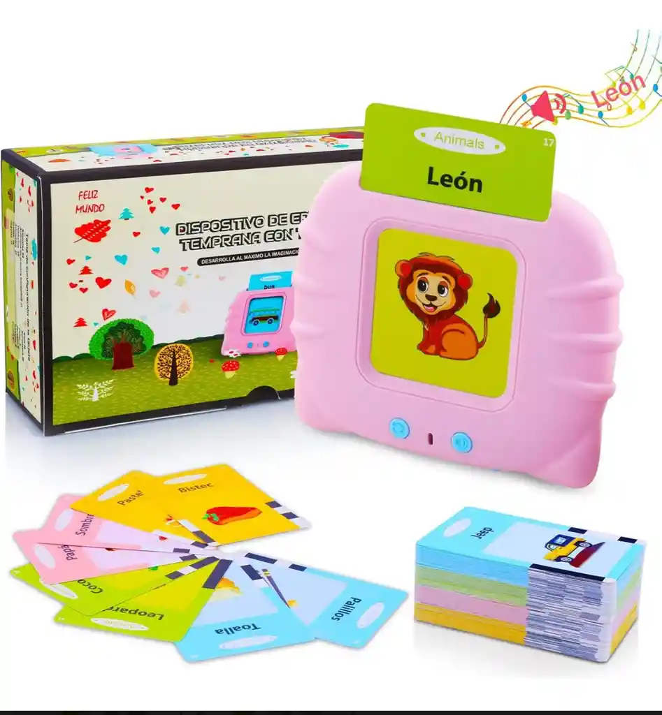 Lector interactivo Ingles de aprendizaje Disponible en rosado y azul Diseñado para estimular el desarrollo del lenguaje desde los primeros años. Este lector incluye 16 categorías temáticas con un total de 224 palabras en inglés. Favorece la memoria visual y auditiva, la pronunciación correcta y el reconocimiento de vocabulario mediante ilustraciones coloridas y audio claro. Fabricado con materiales resistentes, ideal para uso continuo por niños pequeños. Fácil de usar, con botones grandes y estructura ergonómica. Edad recomendada: desde los 2 años.