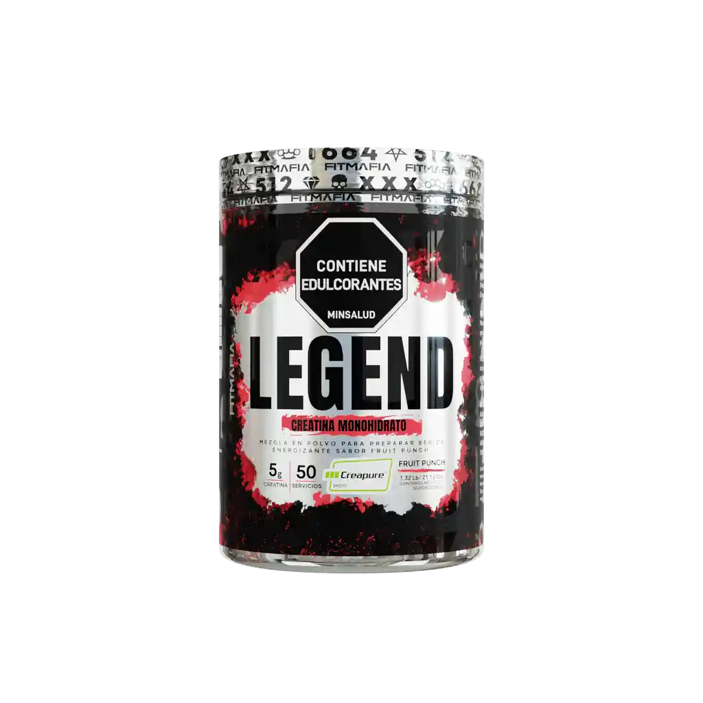 LEGEND es la combinación de Polidextrosa y Ácido α -Metil Guanido-Acético, más conocido como Creatina en esta presentación nuestro monohidrato de creatina contiene la molécula original del laboratorio CREAPURE® a razón de 5g por servicio. Contenido elevado en cafeína (5 mg/100 mL). No se recomienda el consumo de bebidas energizantes con bebidas alcohólicas. No recomendado para personas sensibles a la cafeína. Este producto solo podrá ser comercializado, expendido y dirigido a población mayor de 14 años.